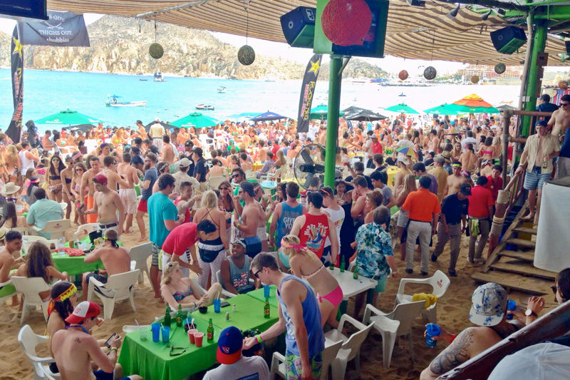 Now here is a section that I will actually get into about Cabo San Lucas. This place has a nightlife that is famous, and rightfully so. It's wild, it's sloppy, it's lawless, and it's all day long, — 7 days a week. This is the 'Las Vegas of Mexico'. You can party all day and all night long, 7 days of the week here. There's a few places that are famous and I will admit, very fun, if you know what you are getting into. It's going to be gringo tourists everywhere getting wasted on tequila. Participating in wet t-shirt contests. Getting henna tattoos, paying to pose with iguanas, taking tequila shots out of fake penises etc. You get the drill.